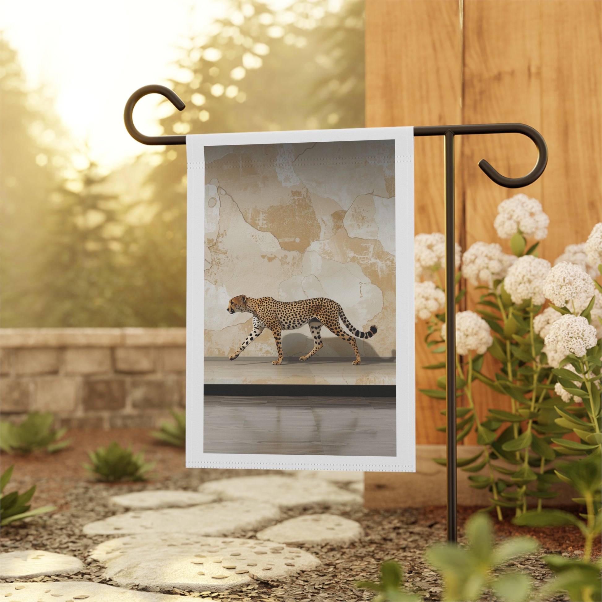 Cheetah Walk Garden Flag — Safari Animal House Banner