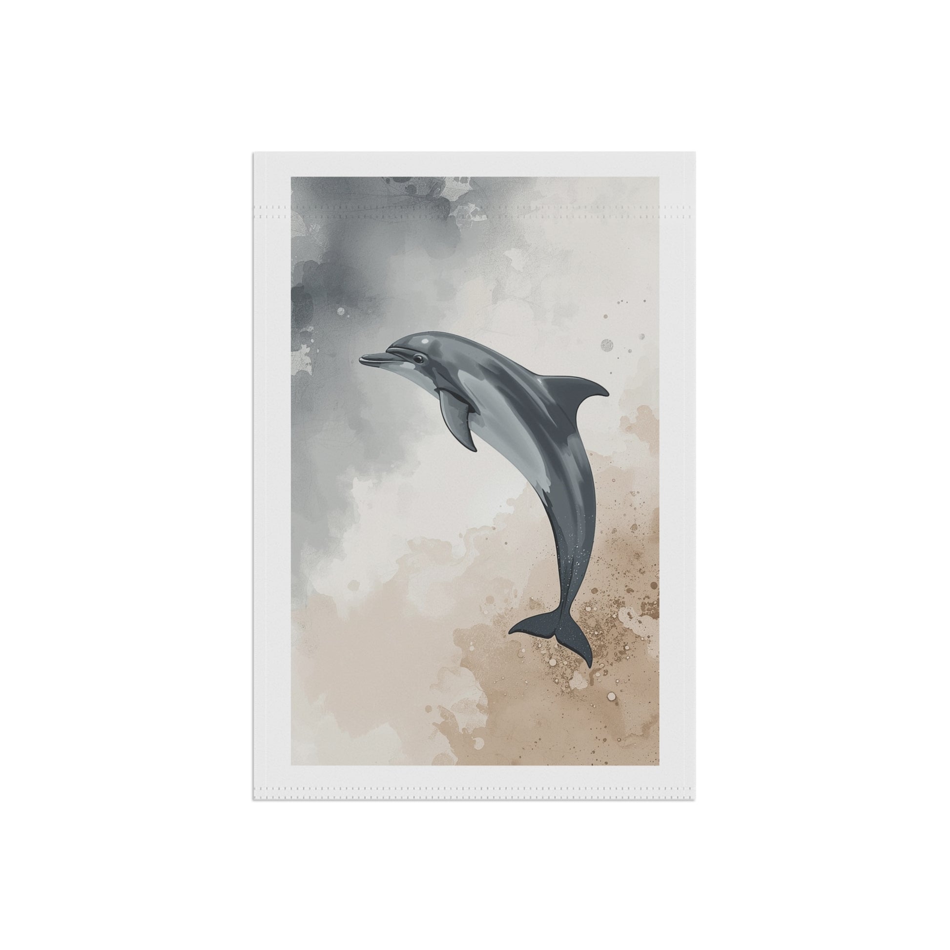 A coastal whisper for your garden or porch. This lightweight poplin-canvas banner features a serene, leaping dolphin rendered in soft grays and sandy neutrals, like a memory of tide-swept mornings. Hung from its sewn top sleeve, the banner drifts gently in the breeze — a quiet nod to shoreline walks, seaside cottages, and anyone who keeps the ocean close at heart. The double-sided print ensures the image reads beautifully from every angle while the subtle black lining gives depth to the muted watercolor background. Tuck it onto a standard garden pole or display it inside to bring a calm, marine touch to a hallway, sunroom, or entry.