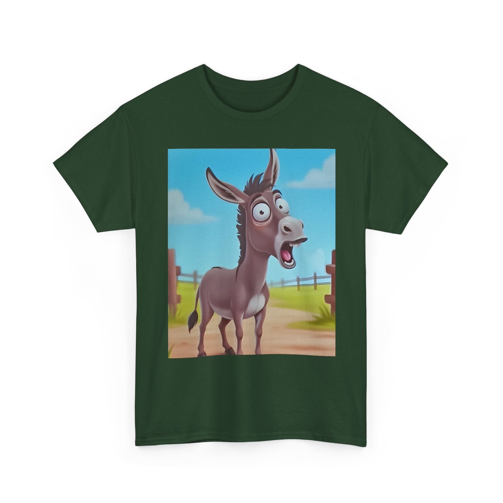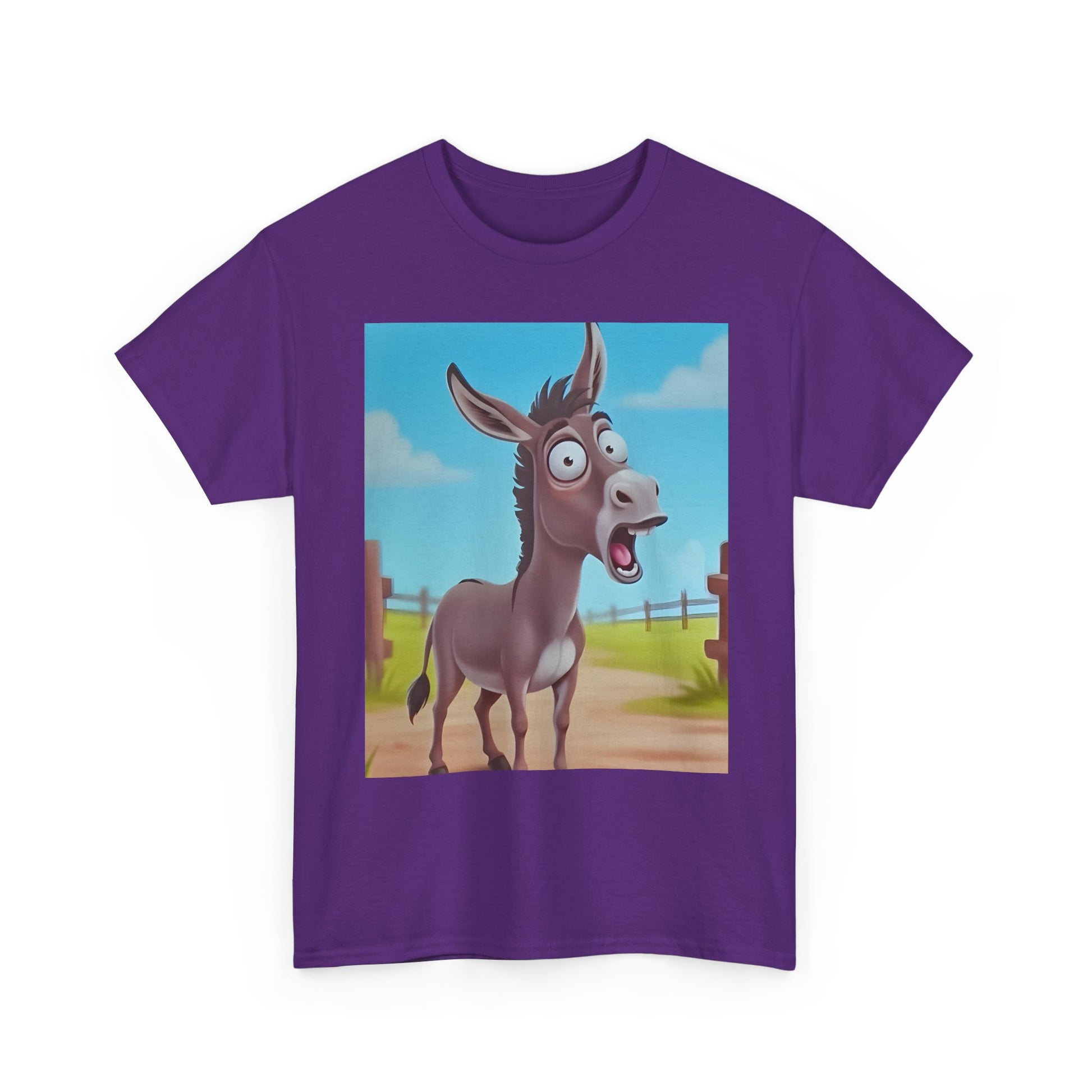 Funny Shocked Donkey Hilarious Cartoon Farm Animal Meme Graphic Tee | Trendy Streetwear T-Shirt | Unisex Cotton Comfort