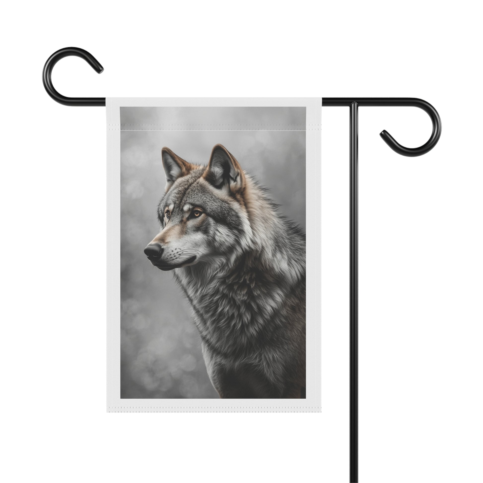 Wolf Portrait Garden Flag - Realistic Gray Wolf Outdoor House Banner